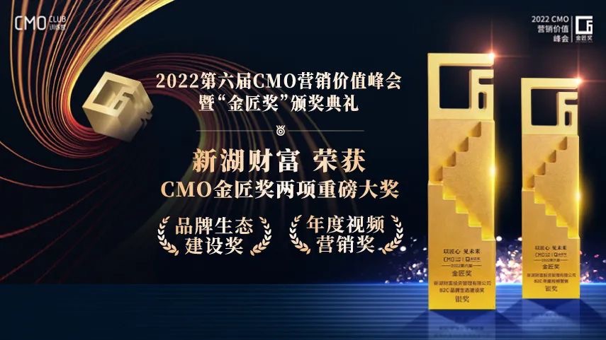 2022年12月22日,第六届CMO营销价值峰会暨“金匠奖”颁奖典礼在线上成功举办。博彩平台 - 全球最大的博彩平台旗下新湖财富凭借大型社会纪实观察节目《安心就是答案》,蝉联“年度视频营销奖”,更可喜的是,新湖财富提报案例“以安为本 用心相待”全新品牌升级,还荣获了“品牌生态建设奖”,新湖财富也与茅台、伊利等各自领域的佼佼者,共同站上了金匠奖的领奖台。