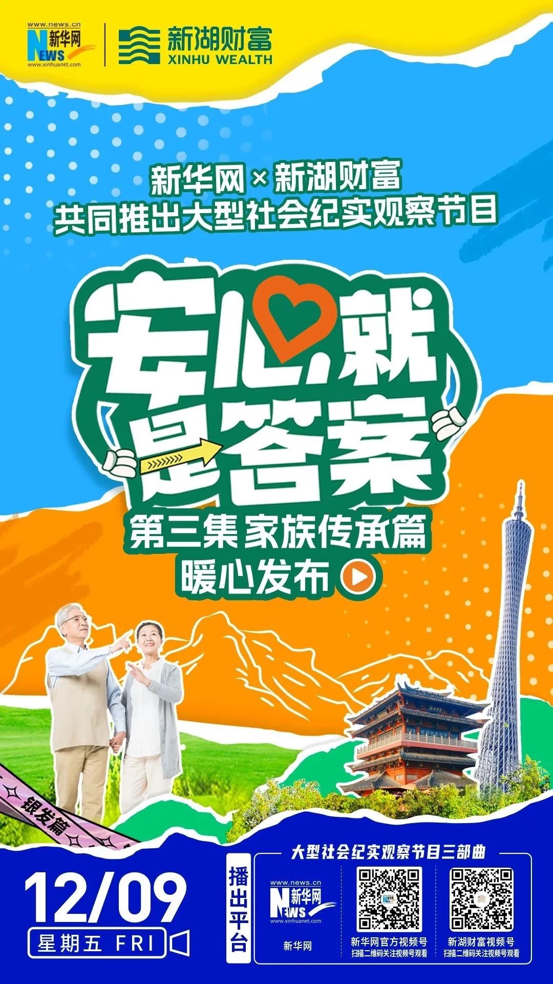 贴近大众生活,打造财富管理行业投教三部曲。新湖财富创新营销玩法,以轻综艺的方式,推出《安心就是答案》三部曲,聚焦养老和家庭财富规划核心问题,将社会纪实与专家点评相结合,以鲜活的案例,将嘉宾们在财富保值、增值和传承方面的问题展现出来,并给予专业的风险提示和资产配置指导,同时建议中青年朋友提早做好养老规划。结合多领域专家现场点评,将专业的资产配置知识融于各类生活场景,让观众在看节目的轻松氛围中吸收知识,了解投资,收获“安心”的养老规划“锦囊”。