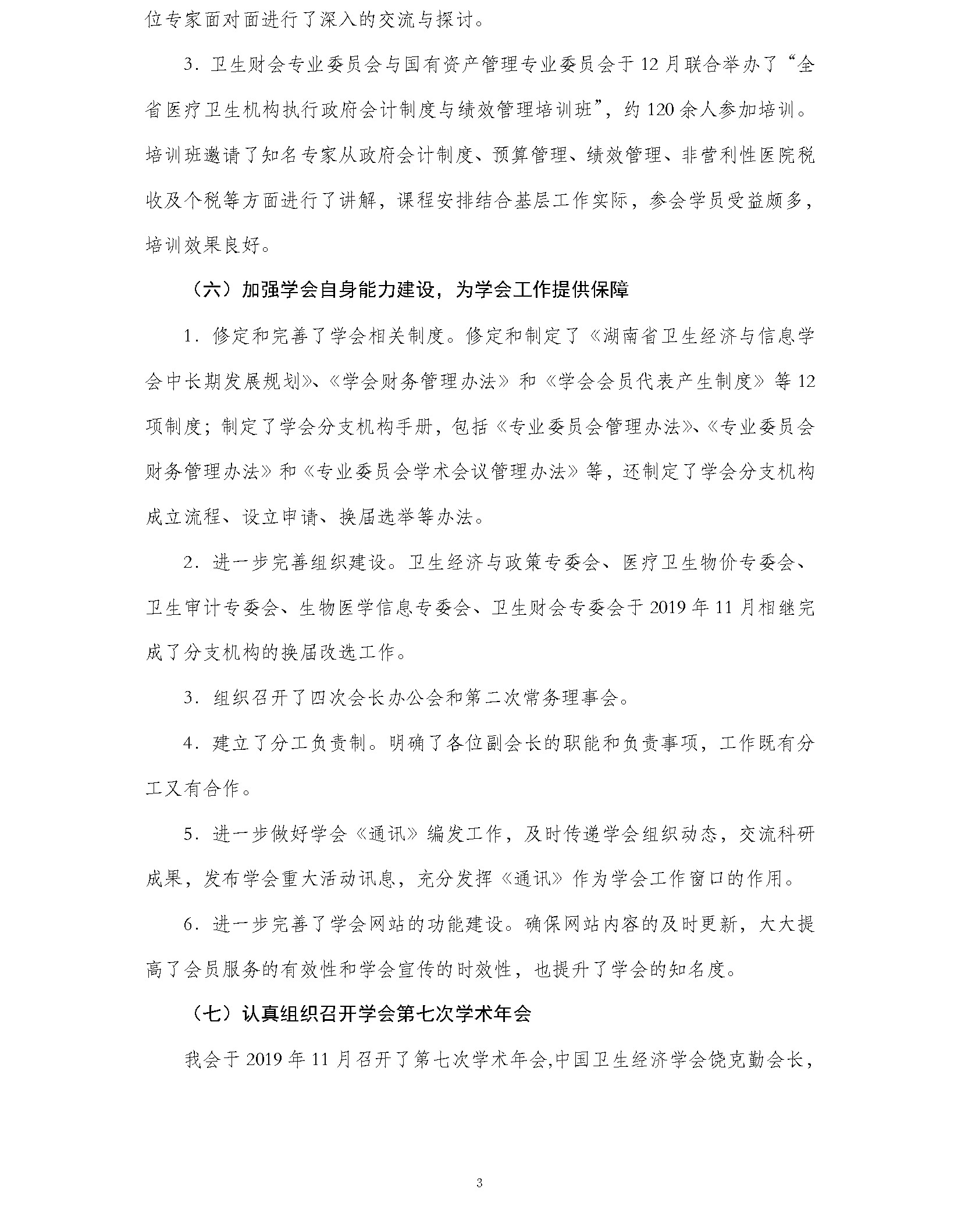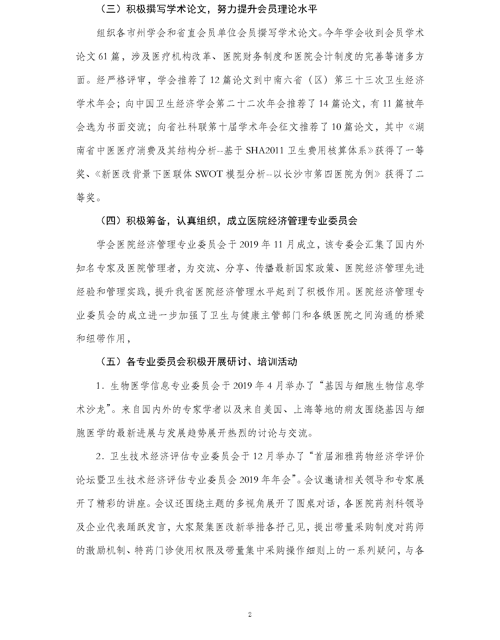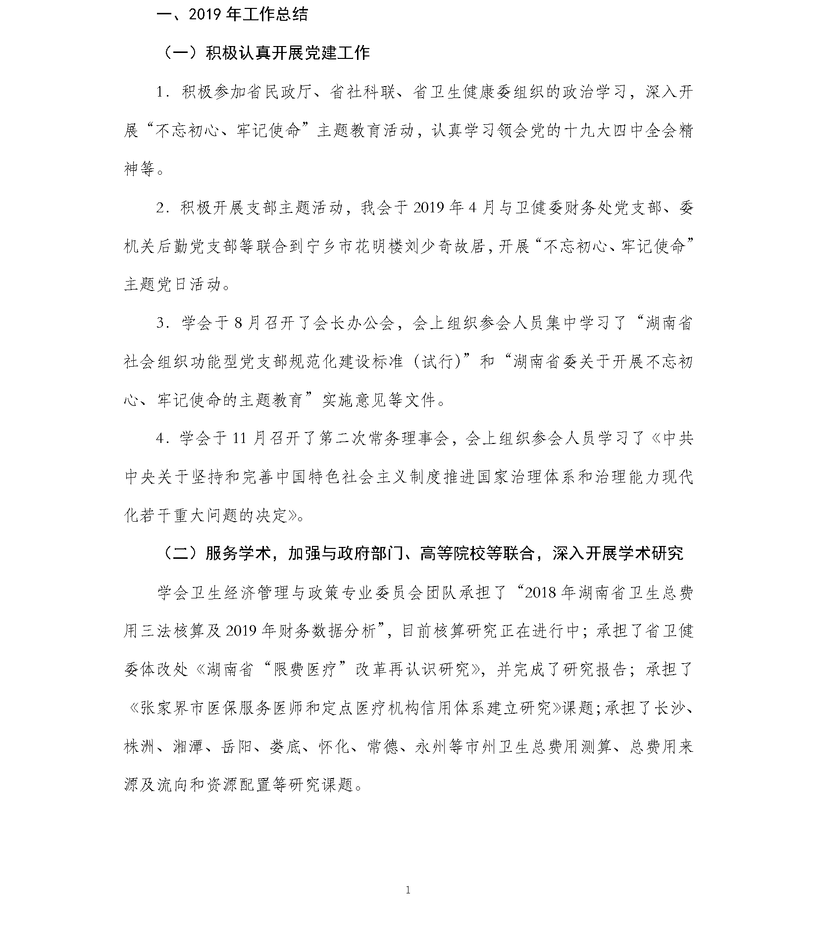 湖南省卫生经济与信息学会2019年工作总结及2020年工作计划