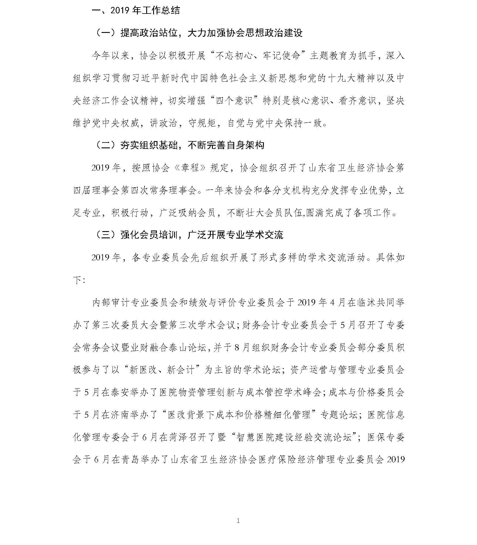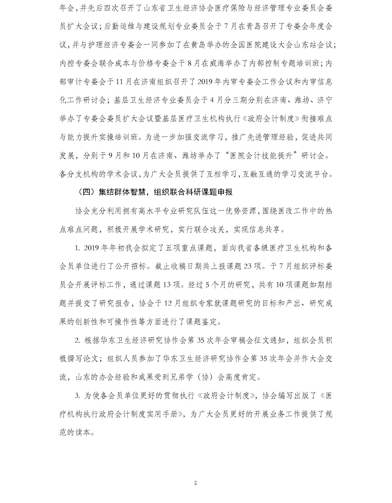 山东省卫生经济协会2019年工作总结及2020年工作计划