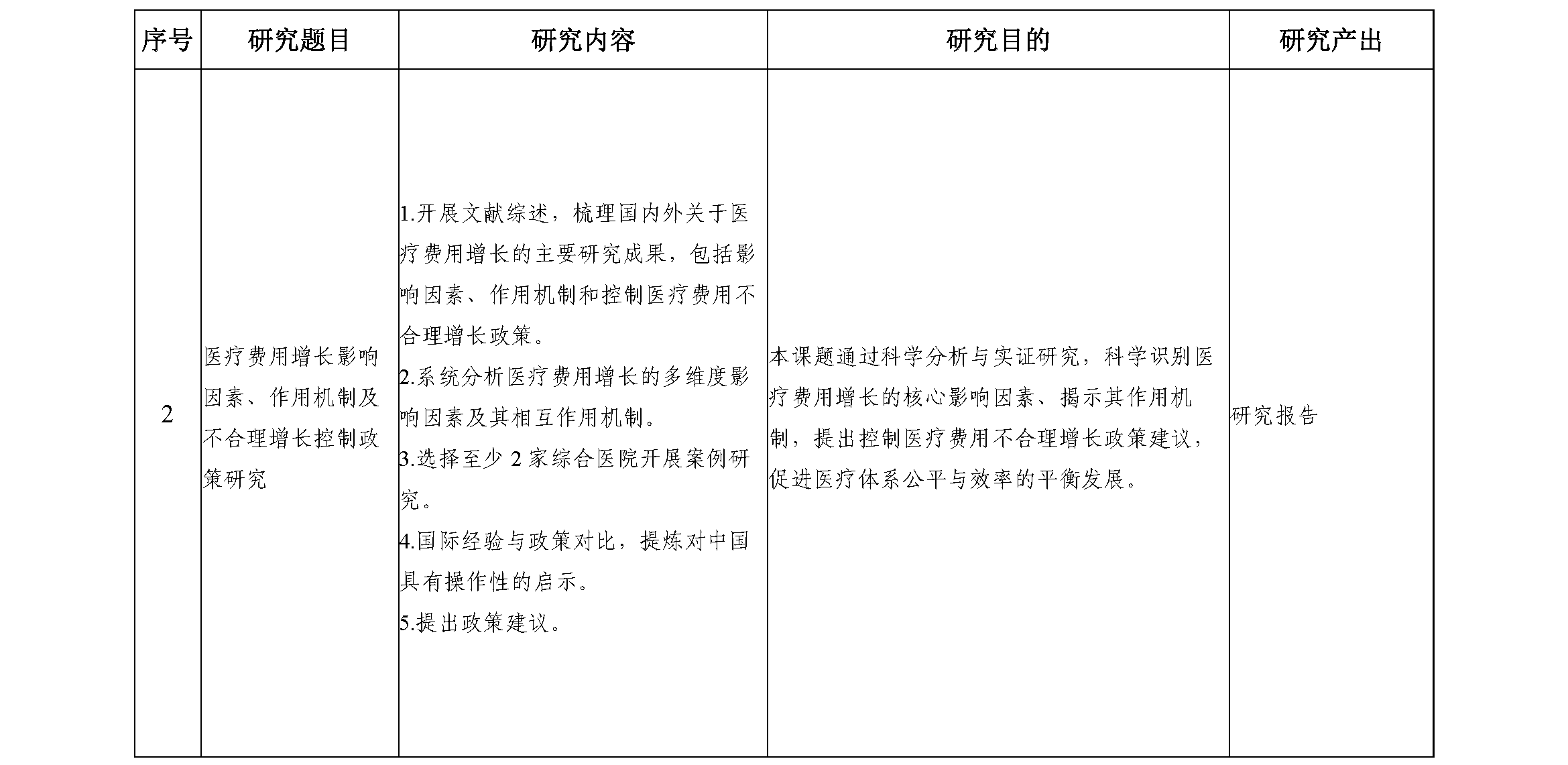 (二)医疗费用增长影响因素、作用机制及不合理增长控制政策研究。