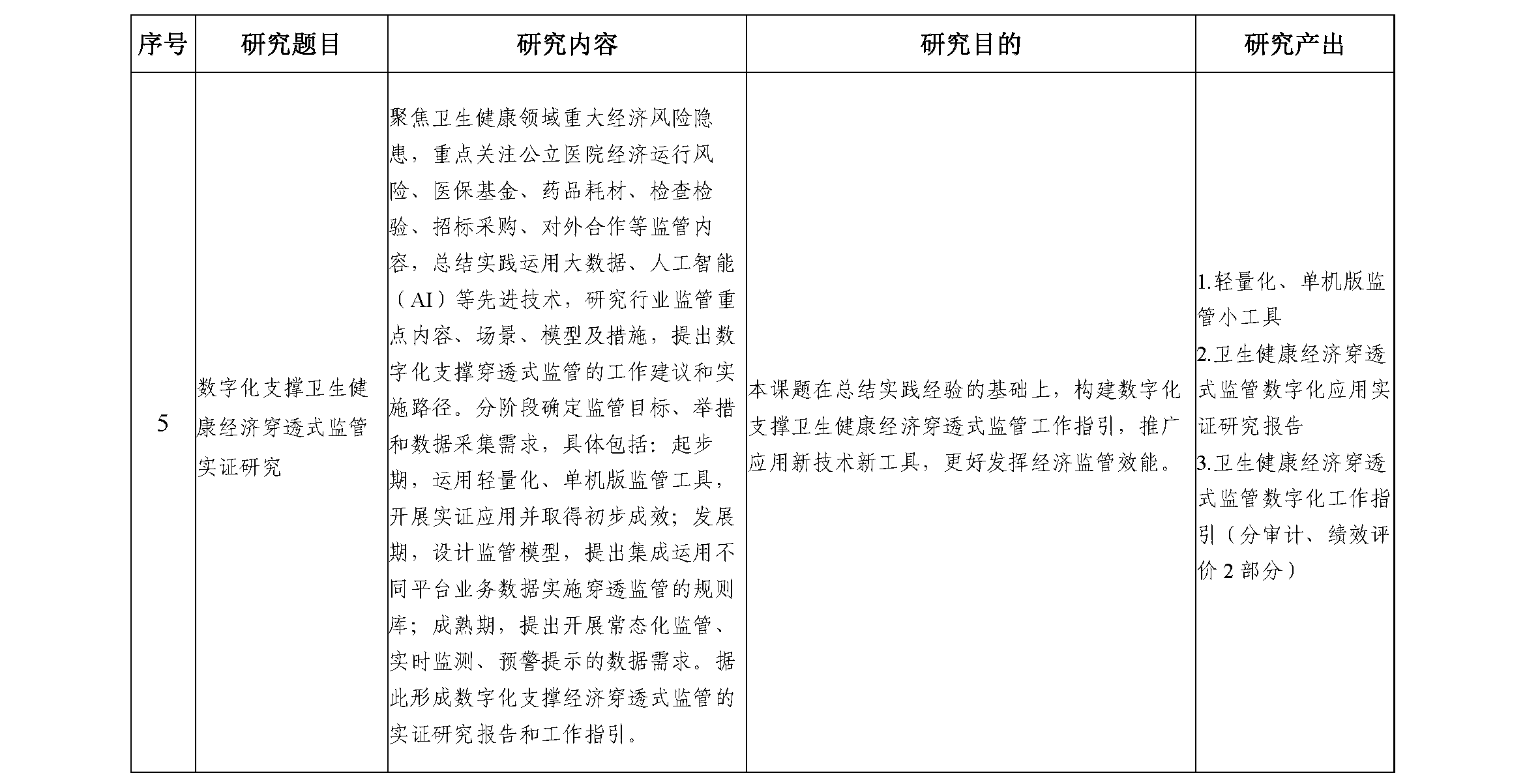 (五)数字化支撑卫生健康经济穿透式监管实证研究。