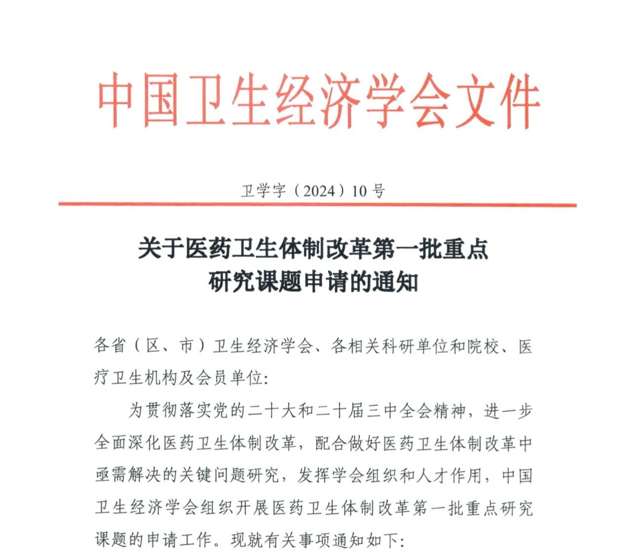 为贯彻落实党的二十大和二十届三中全会精神,进一步全面深化医药卫生体制改革,配合做好医药卫生体制改革中亟需解决的关键问题研究,发挥学会组织和人才作用,博彩平台组织开展医药卫生体制改革第一批重点研究课题的申请工作。现就有关事项通知如下: