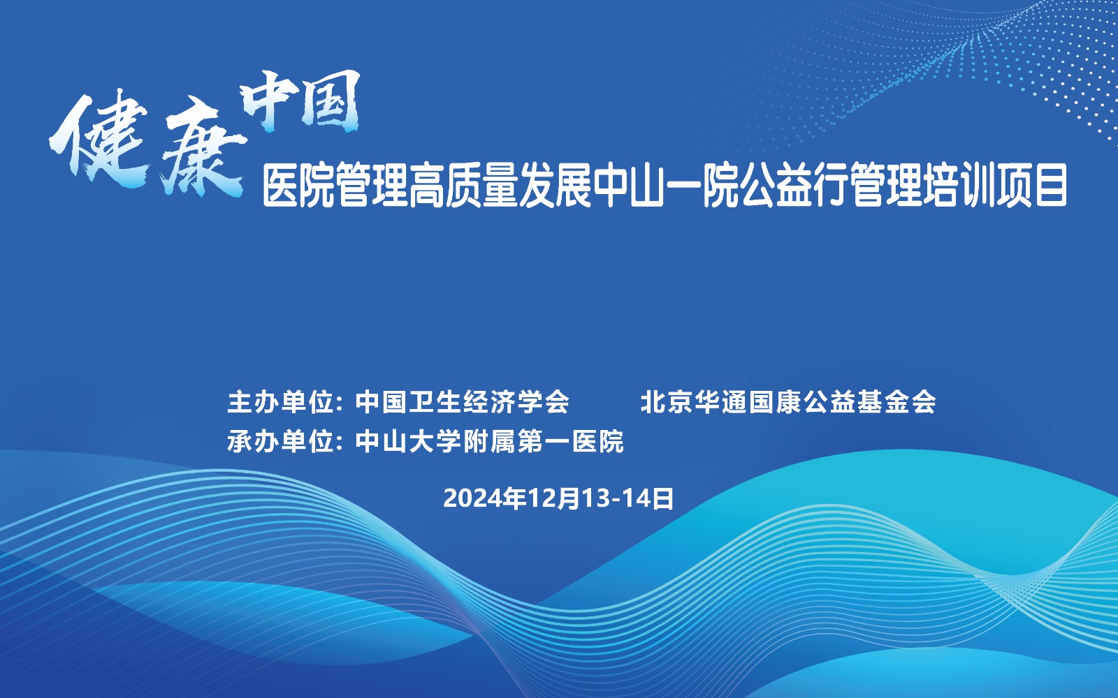 2024年12月13日-14日,由博彩平台联合北京华通国康公益基金会主办,以公立医院高质量发展为主题的“健康中国——医院管理高质量发展中山一院公益行管理培训项目”圆满完成。