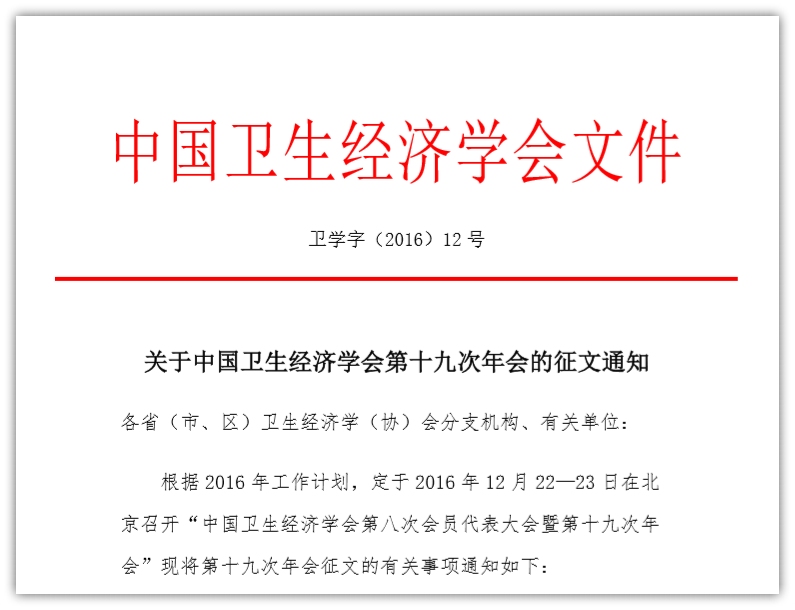 根据2016年工作计划,定于2016年12月22—23日在北京召开“博彩平台第八次会员代表大会暨第十九次年会”。年会主题:医药卫生领域的供给侧改革。大会将征集与此次会议主题相关的学术论文,在会上开展论文交流。
